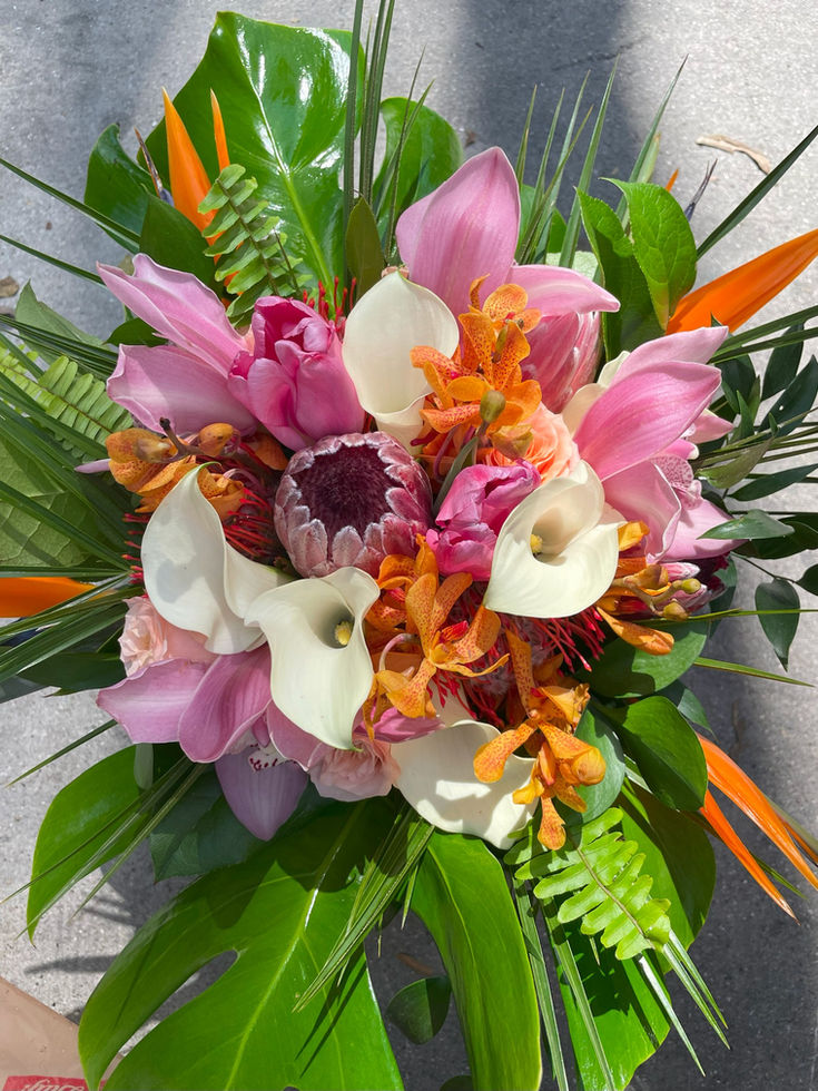 Escape to paradise with Tropical Bliss, a vibrant arrangement of orchids, birds of paradise, and tropical leaves. This bold and colorful bouquet captures the essence of a sun-kissed tropical retreat, making it the perfect gift to bring warmth, beauty, and a touch of exotic charm to any occasion.