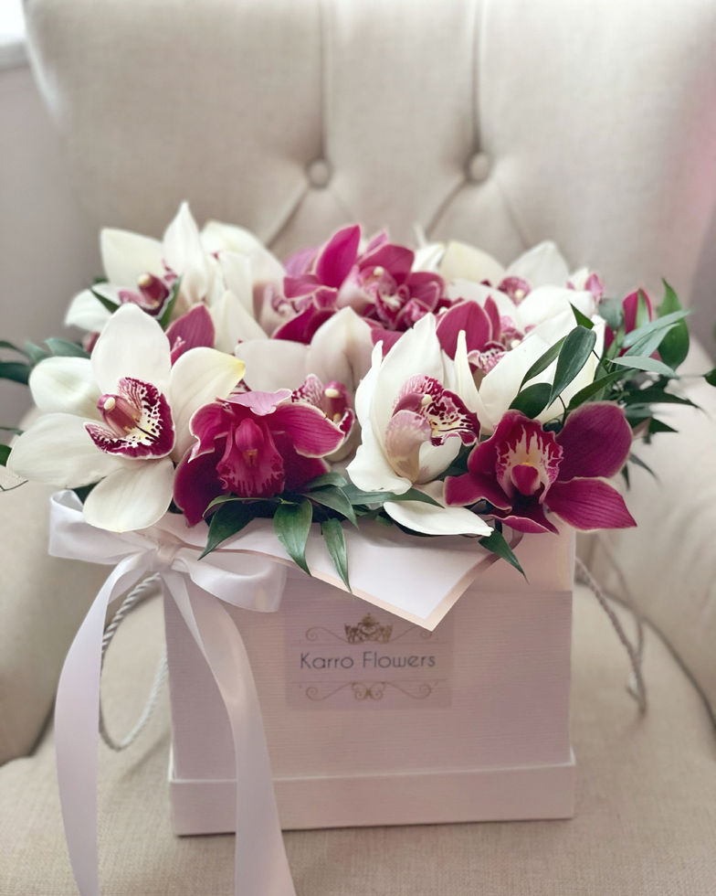 Embodying elegance and tranquility, Garden of Grace is a refined arrangement of white and purple orchids, and greenery. With its soft, graceful blooms, this bouquet evokes a sense of purity and beauty, making it the perfect gift for moments of reverence and appreciation.